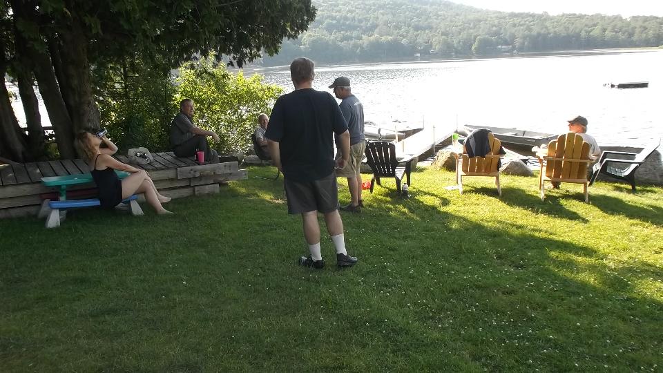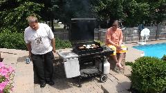 At 2:15 we arrive to visit Jim and Carolyn Mail in Nashua, New Hampshire. Before we get too far in to tinkering with Jim's MGA we hike across the street to crash the neighbor's yard party and pilfer some burgers and brats.
