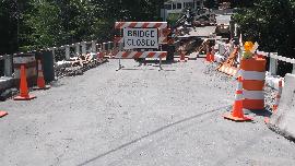 Fifteen minutes on we need "Left on NH-4A, 0.2-mi. Also see "Bridge out, 1/4 mi". Then just 0.15 miles on we find "Bridge Closed" for real, and our intended turn is just on the other side of the bridge. Nothing new with Mapquest, and only a short detour around. Not all misdirections are bad. This one led to a nice view of a lake and dam.