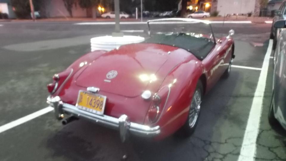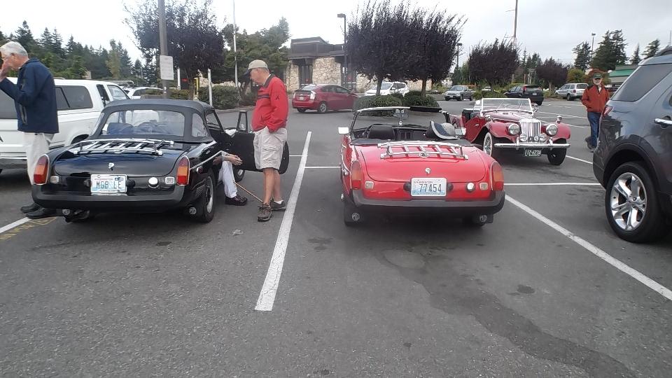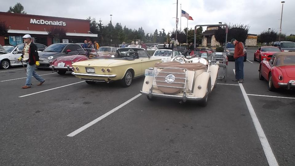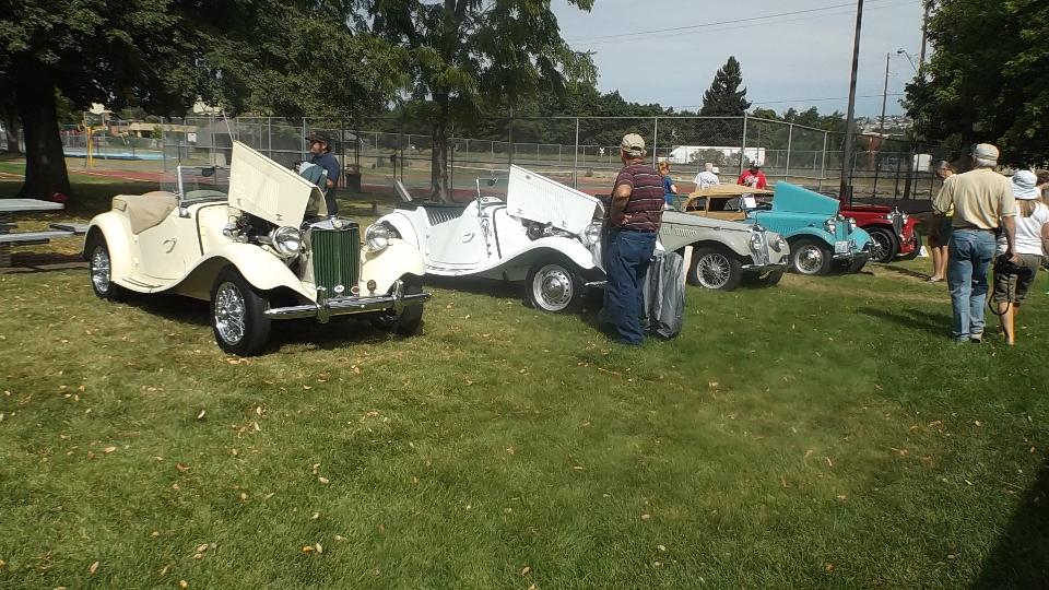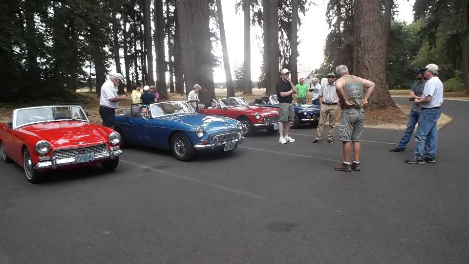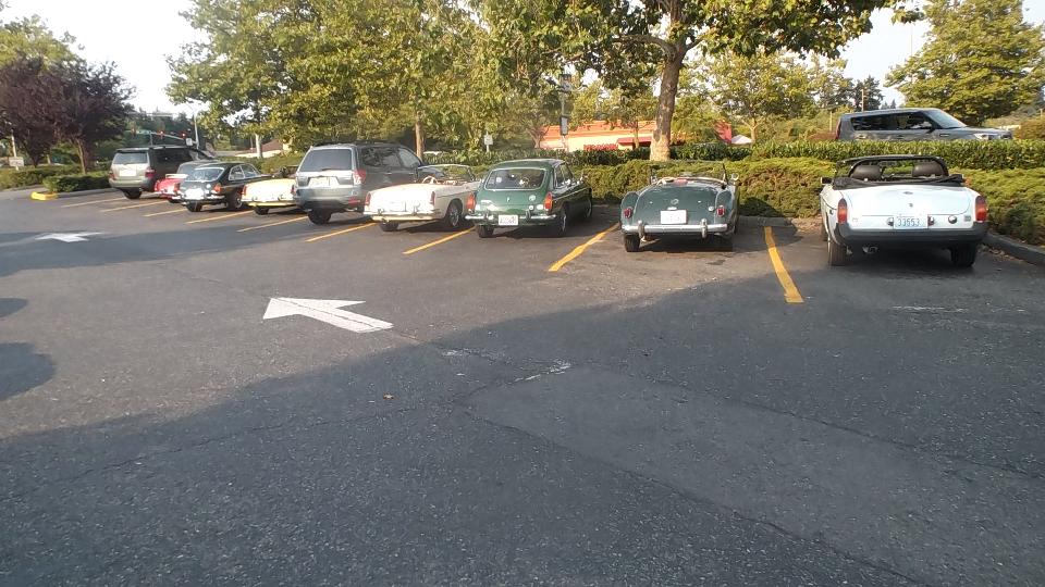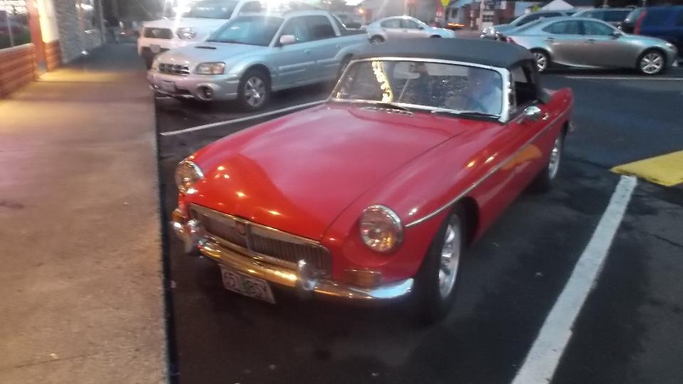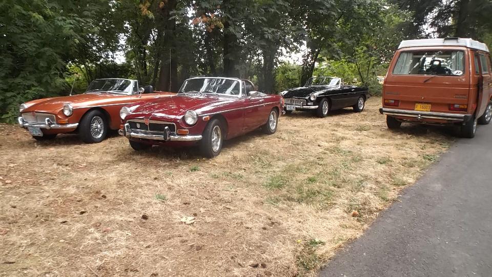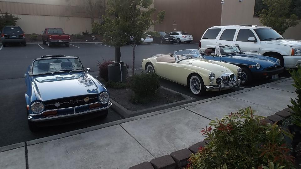 Got a few hours sleep, finished posting the club newsletter on line, and caught up with bulletin boards and email, finally. Tonight we have a meeting in Portland with Columbia Gorge MG Club (previously Columbia Gorge MGA Club). Arriving a bit early (for a change), I got a picture of one MG Midget in front.