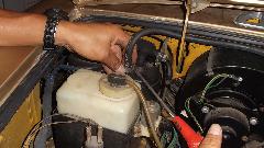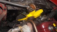 In the car park, an impromptu tech session on how to hide a power brake booster behind the MGA driver side splash panel.