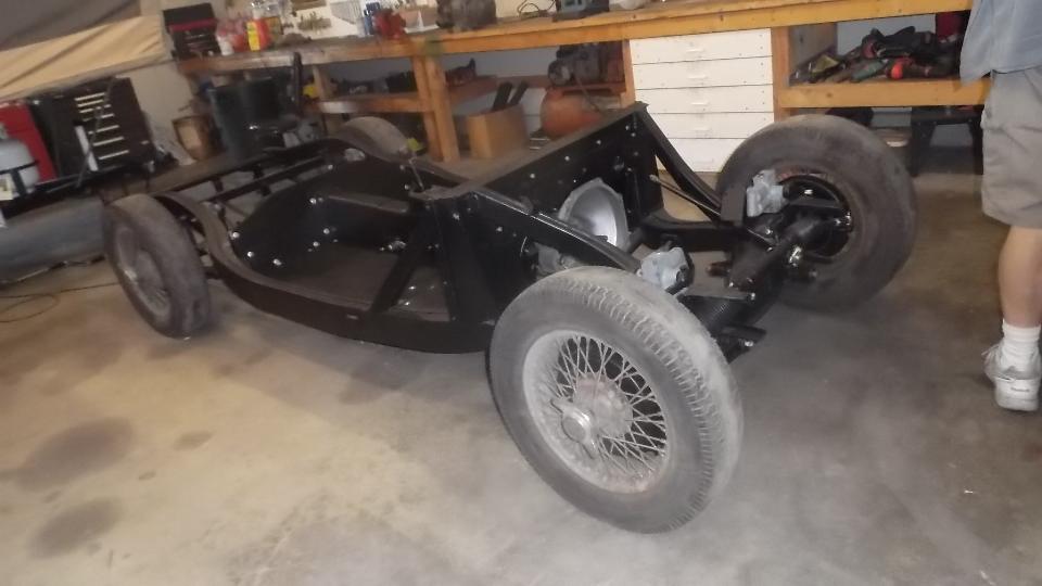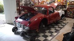 More technical issues with the club web server, and a little more work on posting the club newsletter on line. Early afternoon we headed south from Sammamish, WA (East side of Seattle) to Orting, WA (southeast of Tacoma). We were stuffed pretty bad in rush hour traffic, turning a short trip into a long trip, but arrived eary evening. We were here to visit Marcus Topp who has an early 1959 MGA 1500 (high starter) in process of restoration. Chassis and body are repaired and painted, getting close to being mated again. The picture does not do justice to the color, as it is a very nice shade of metallic blue.