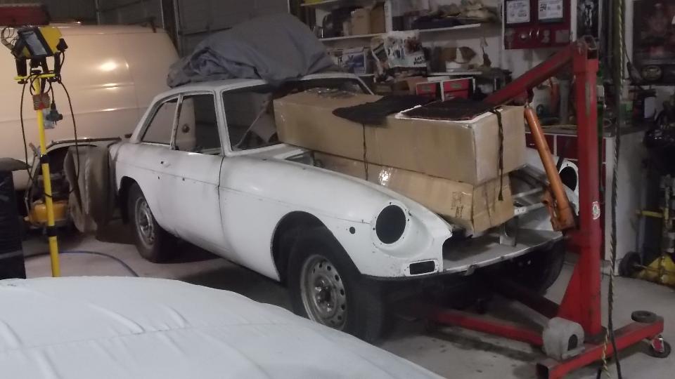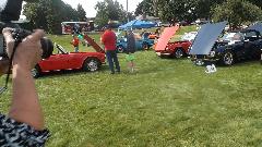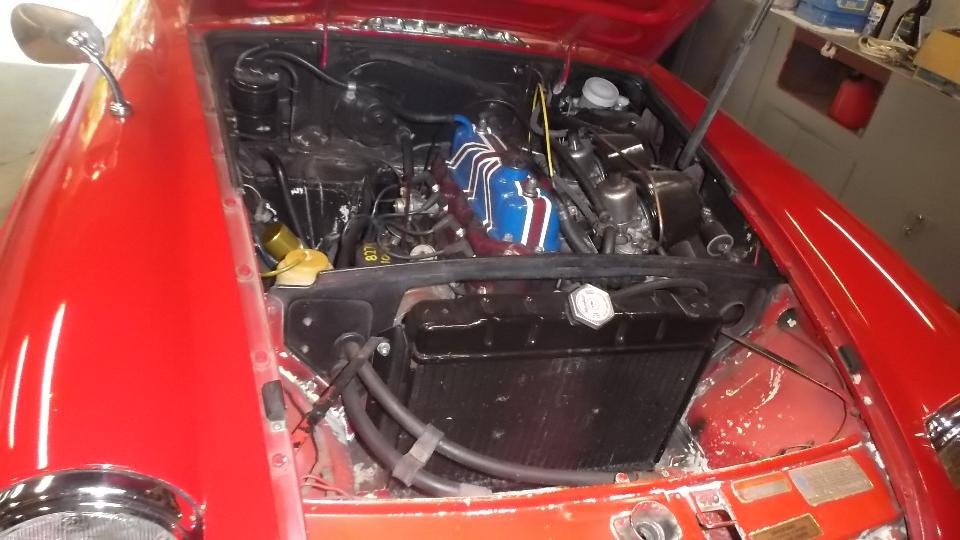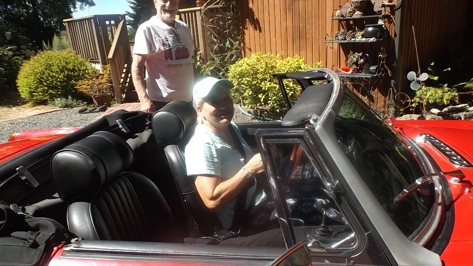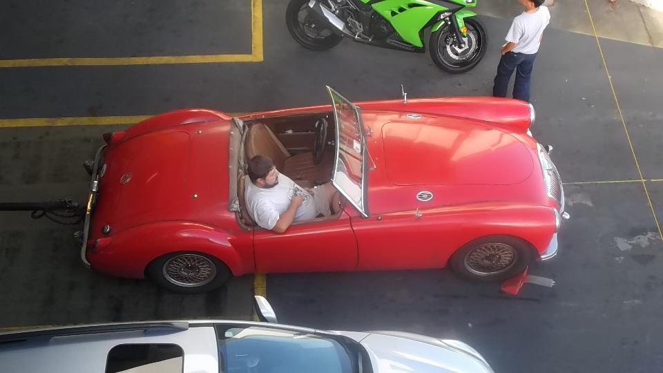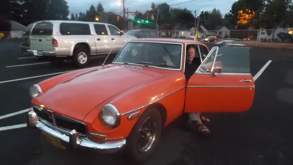 The Red car is a very nice split bumper 1974 MGB that had just found a new home, the other nice lady in the car being the new owner who just came to pick up the car.