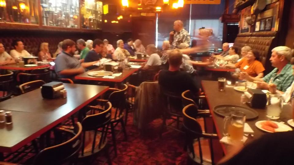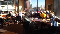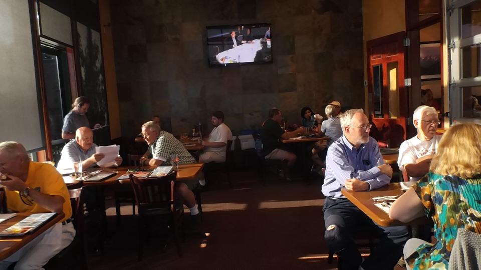 We are here at Bob's Burgers and Brew for an evening club meeting with MG Car Club NW Centre - North End (one of five divisions of this club). We haven't seen a club this geographically diverse since New Orleans. Tonight there were three dozen members and guests present. After dinner there was lots of business to cover in the meeting, followed by lots of tire kicking tech session with the MGs in the car park. Then we retired to the nearest WiFi spot to catch up some email and BBS work.