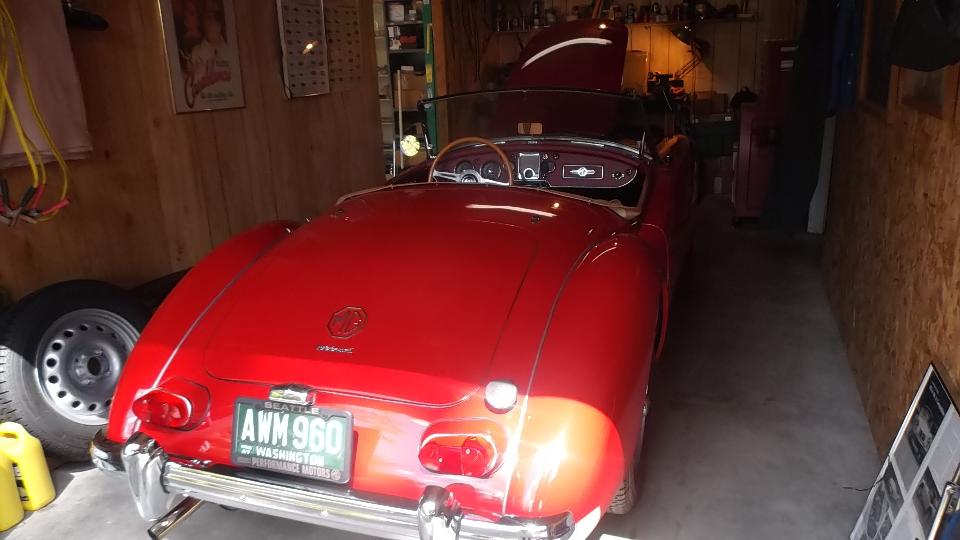 Dropped in today to visit Jim Stout in Shoreline, Washington. He has two MGA 1600-MK-II "Deluxe" roadsters (and yes they only made a few hundred of this model). We gave the red one a bit of a tune up (almost completely original), an did some bonnet latch adjustment on the blue one.