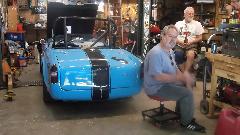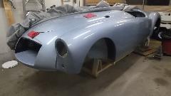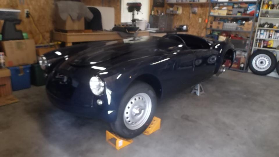 Purists may not like what he is doing with the blue one, Sebring style nose, custom front parking lamps and rear lamps, no bumpers, etc. With the two cars he has two original 1622 engines, one with original close ratio gearbox. The blue car currently has a 3-main bearing 1800 engine (New Old Stock source) with close ratio Ford T9 gearbox. An interesting historical note on "concours" originality: For the "DA" denoting close ratio gearbox stamped on the engine number plate, it is front stamped on one and reverse stamped on the other. Duh?
