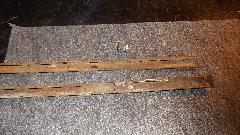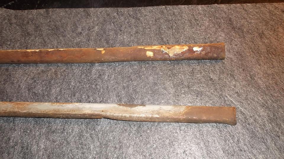 Next chore was to replace rear brake shoes. The prior set ran 160,000 miles until 60% worn and were replaced a few years ago. This set only 61,000 miles, perhaps 30% worn, but sitting on the last notch (19 clicks up) of the adjuster. It is so far out of range that the hand brake was dysfunctional. After installing the new shoes the adjuster went up 12 clicks to be adjusted properly, with new shoes and drums that have never been turned. I would say these are faulty brake shoes. The linings appear to be thick enough, so the steel frame of the shoe must be too short between end abutments. Left, old shoes sitting on 19 clicks. Center, old shoes left and new shoes right. Right, new shoes installed.