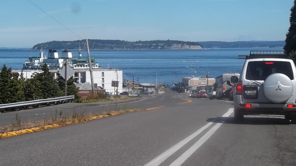 Today we are off to Whidbey Island, north of Seattle in Puget Sound. It is possible to get there via a bridge at the north end of the island, nearly 100 miles out of our way so we bit the bullet and paid the fare for a ferry (twice). First one was the Multikeo ferry. These boats are BIG. Three isles up the center hold up to 100 cars (and enough space for semi trucks). Two shorter isles on each side double decked can hold another 100 cars. This trip not quite 200, but including an articulated buss and a few trailers.