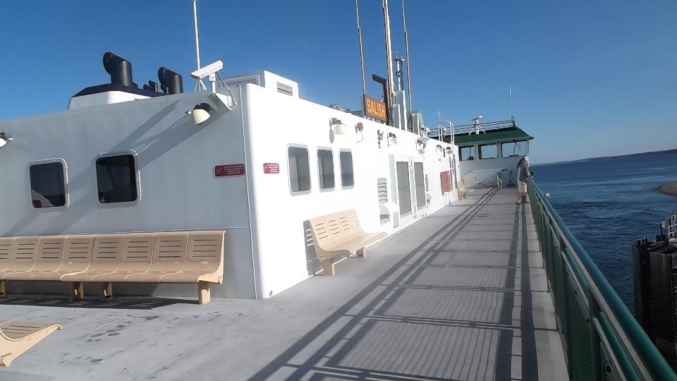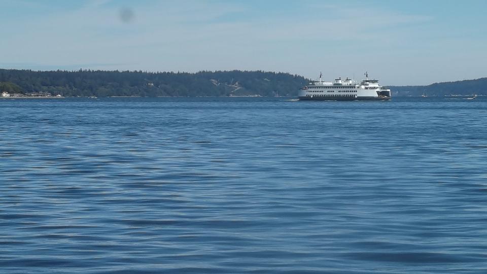 25 miles farther north we catch the 6:00 pm Coupeville to Port Townsend ferry (heading west). This time right up front in the breeze. View from the sun deck (three flights up) is wonderful.