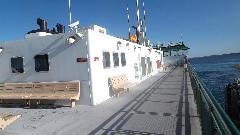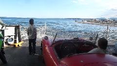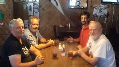 I was happy to find a standard vehicle length is under 22 feet, while my MGA with trailer is 21-1/2 feet. I was surprised to see how fast the ferry could travel, but was not able to find specifications for the machinery. Just off the ferry we stopped for lunch at Cozy's, apparently the oldest restaurant on the island. Left to right is myself, then Jim Stout (from day before) and friend Steve Poole, and Robin Bee who is a resident on the island and came to meet us for lunch.