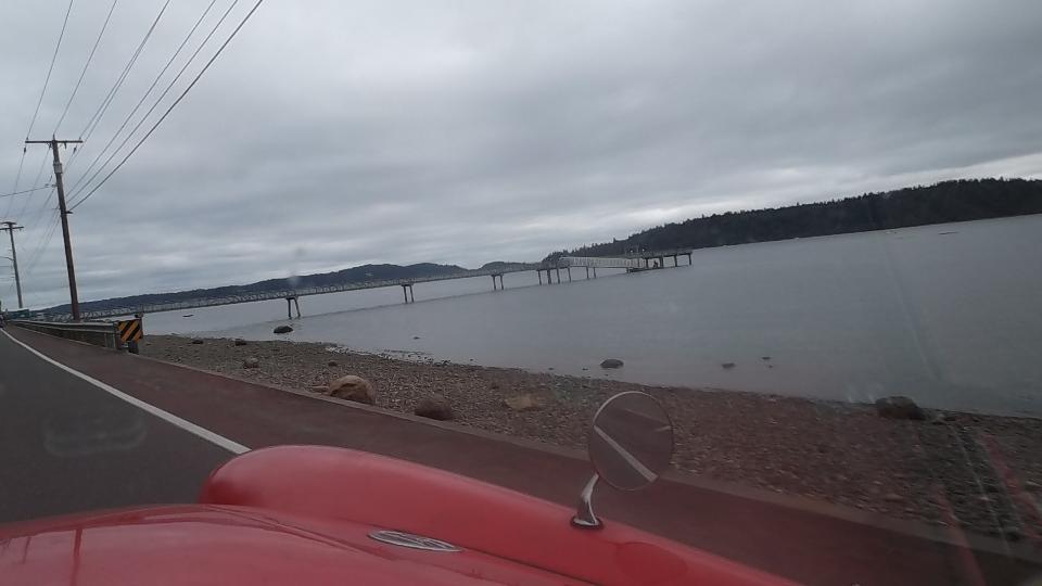 Also a bit of song and dance about the Corvair Monza Spider turbocharger, factory issue circa 1963. Then join the small convoy north, east, south, down to the Tacoma Narrows Bridge (where we get to pay $9 to drive about a mile). Between two ferries and one bridge we have paid about $40 in tolls in the past 30 hours. I keep forgetting, we gotta cut that out.