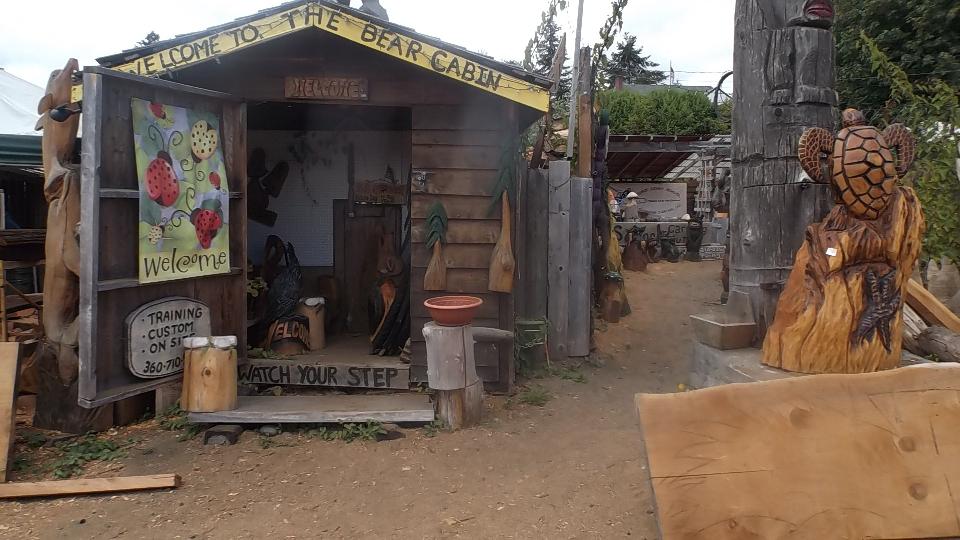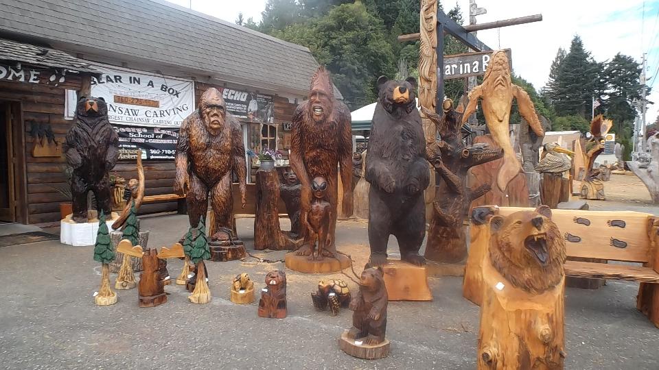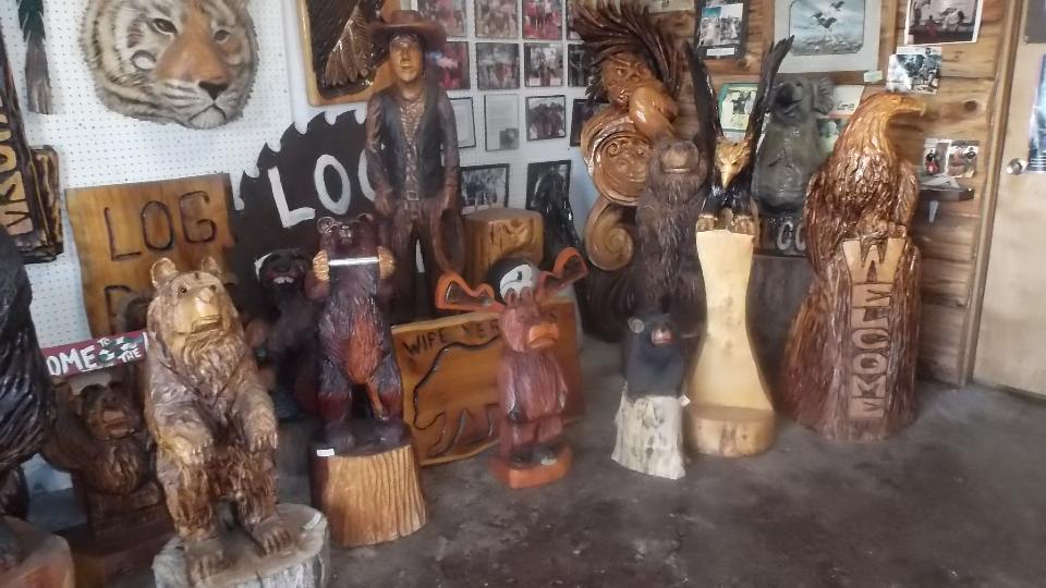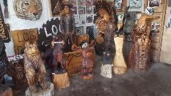 Across the street we found a novel wood carving shop with about a thousand sculptured friends of nature.