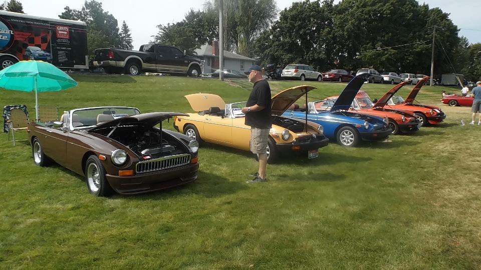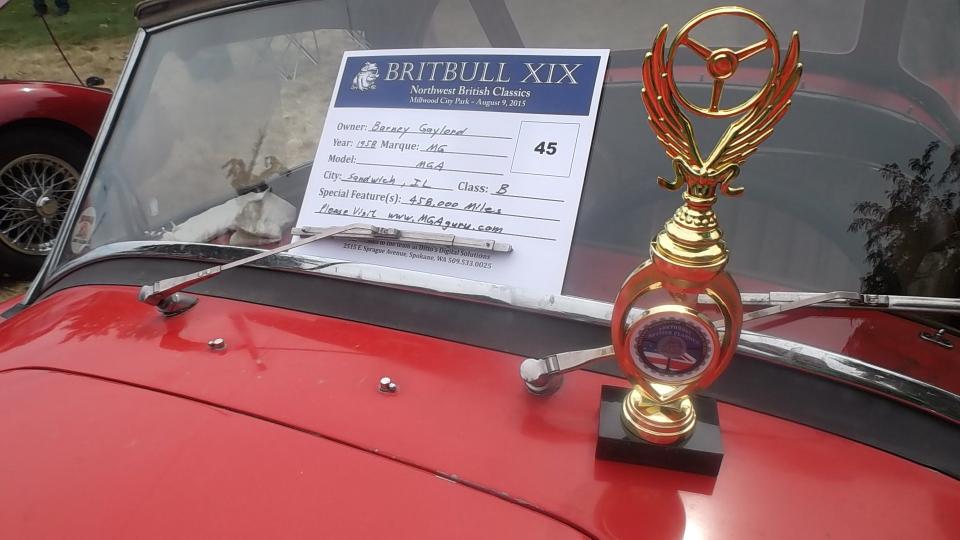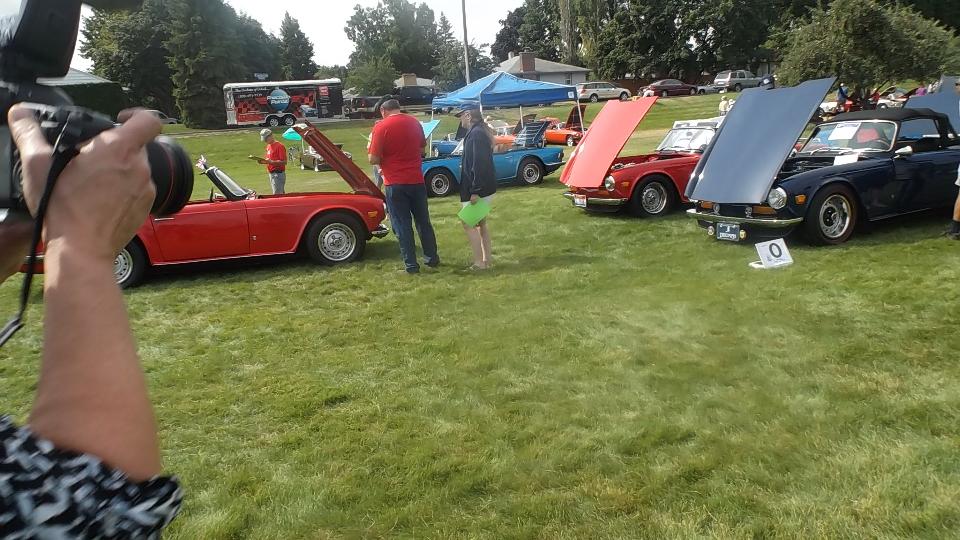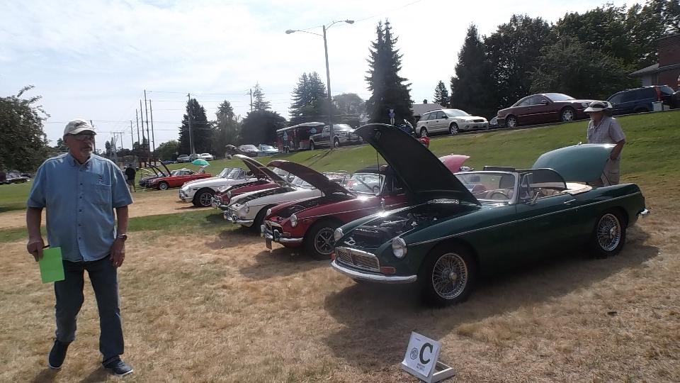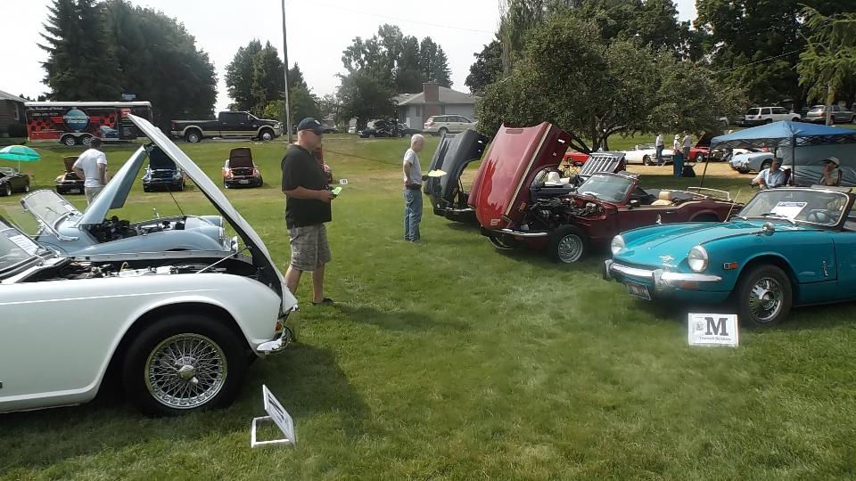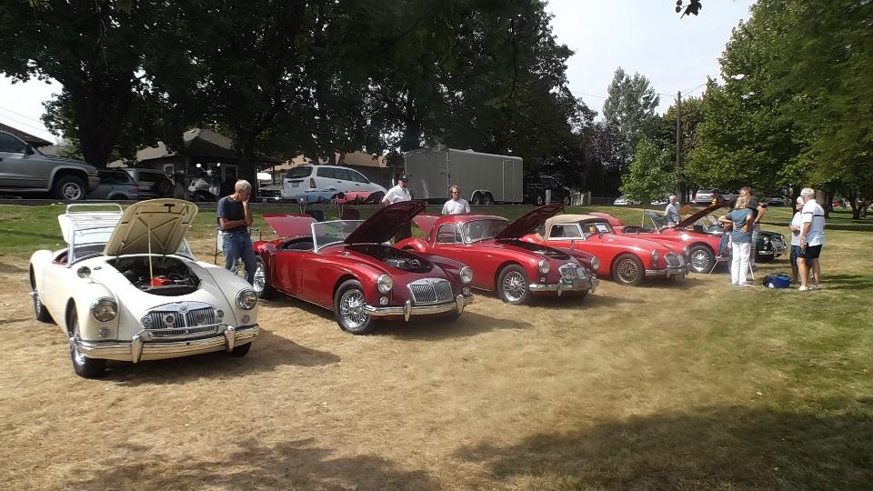 Today we have "Northwest British Classics – BritBull" car show in Millwood, Washington (siamesed with Spokane). This event is sponsored by Inland Empire MG Classics car club in Spokane. We popped in at 9-am to register, and we were definitely not the first to arrive. Let's see if I can count.