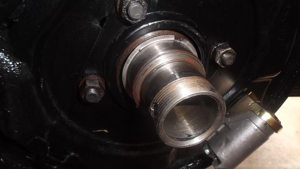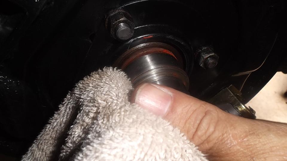 Maintenance day today. Start the day by installing a Speedy-Sleeve on the rear axle of Larry Wheeler's MGA. It was nearly trashed the first time when the plastic pipe being used as a driver punch slipped off center. But we managed to recover the sleeve, straighten the flange a bit, and get it reinstalled.
