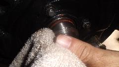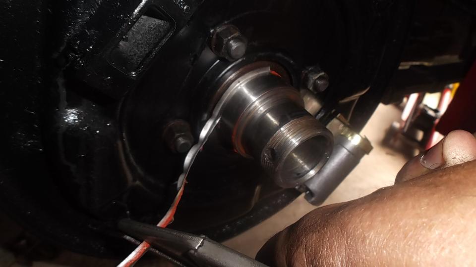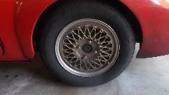Later in the evening I talked Larry into a trip to Harbor Freight to buy a breaker bar and 1/2-to-3/4 socket adapter so we could finish tightening he octagonal nut and get his car back on the road for a test drive. The last picture is his wire wheel in need of cleaning the gear oil off before it goes back on the car.