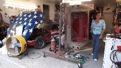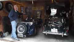 (I wonder why he changed it). He is in our 1997 travel log from the Alaska trip. He changes cars occasionally, but today he has an MGA 1600 Coupe well along in restoration. That would be the little blue thing next to the 1959 Thunderbird (in case you couldn't figure that out). We were thinking about installing the headliner and windows in the MGA, but he still has to clean and paint the interior top bows, so maybe we can find something else to do here. Oh, that's his MGB and MG TF in the screened garage, leaving space for his wife's modern Mini (funny how that works).