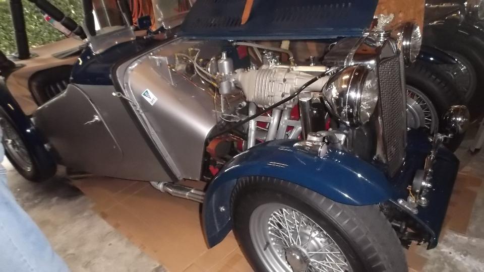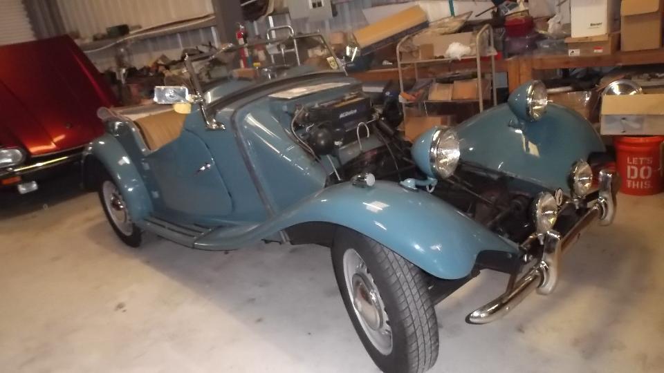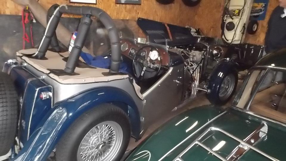 Up by mid morning, and out to the garage to check out Gene Gillam's additional rolling stock. This is his "other" MG TC (also with supercharger). It was originally configured for racing, never raced, but is tractable for street use.
