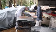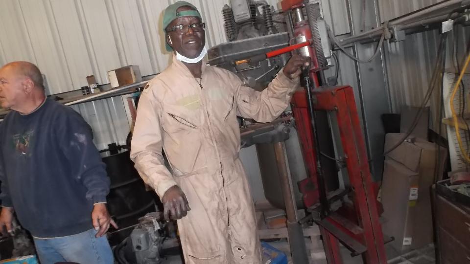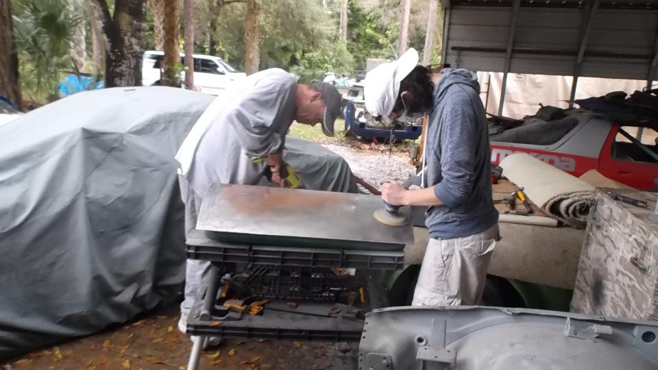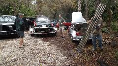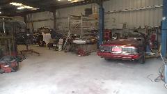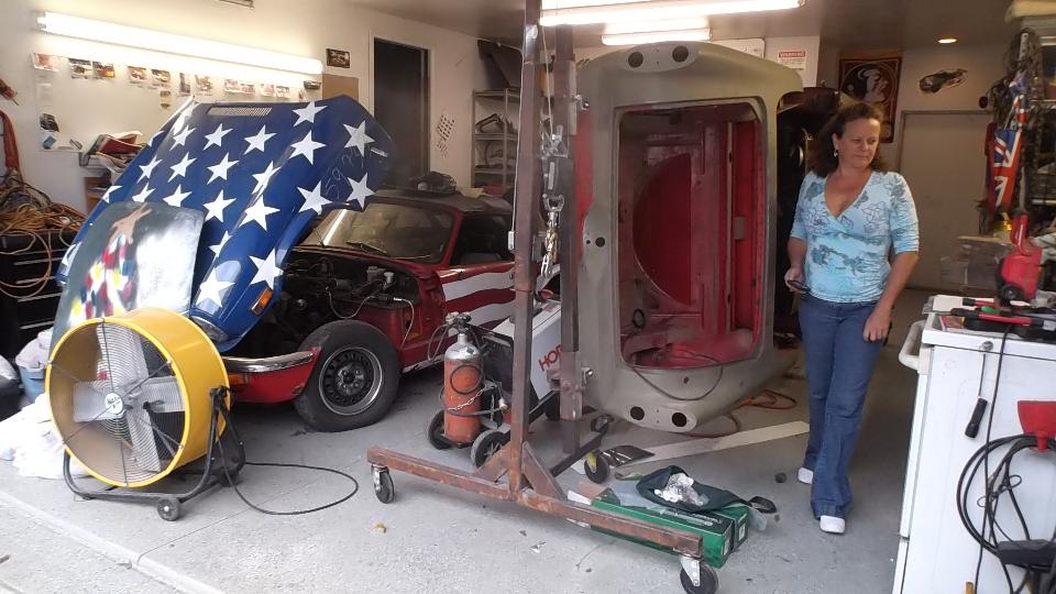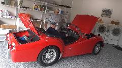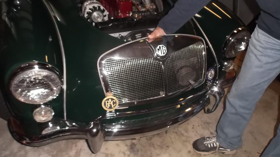 Cars under wraps, cars being sanded and assembled, and club member cars here for service. The MG Midget is well used, runs okay, sort of stops, needs some attention to the brakes (belongs to the nice lady in picture above).