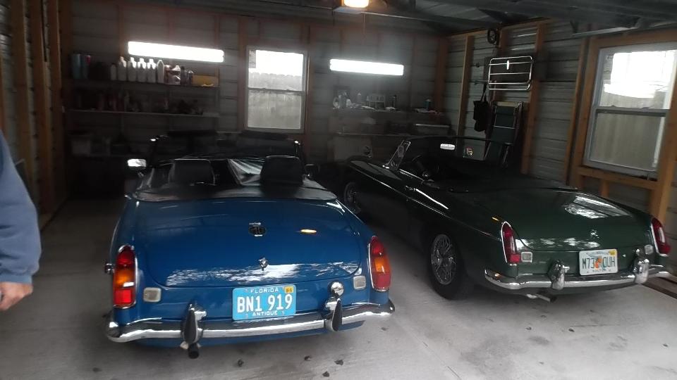 Another 100 miles east we stopped in Freeport, Florida early afternoon to visit Dean Bowman. He has two MGB, a '67 and a '72, both very nice. Story is that one was cheap and the other was free, but both had to be painted and re-trimmed. In the shed he has two MGB hardtops (needing repaint and re-trimming), a spare gearbox and a few more spare parts. All in all he is in great shape with two running MGs, a Porsche Boxter he bought new in the mid 90's, a utilitarian pickup truck, and not much to worry about (no big projects pending). We had a nice lunch together accompanied by plenty of MG chat.