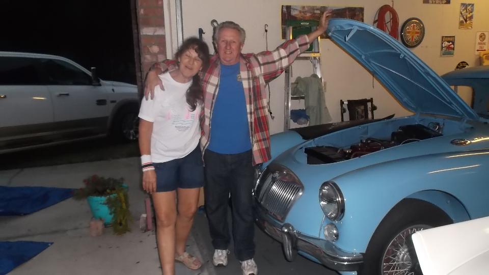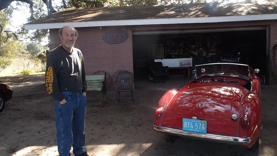Meanwhile, say hello to Tom Orlando from Staten Island, New York. He is in Florida for a visit, thinking of moving here permanently. A friend of his spotted my MGA and sent a picture of it to Tom, and Tom rushed right over to say hello. Tom has a 1959 MGA in VERY good condition, and a 1964 MGB as a pile of parts. We will have to look him up when we get to NY again.