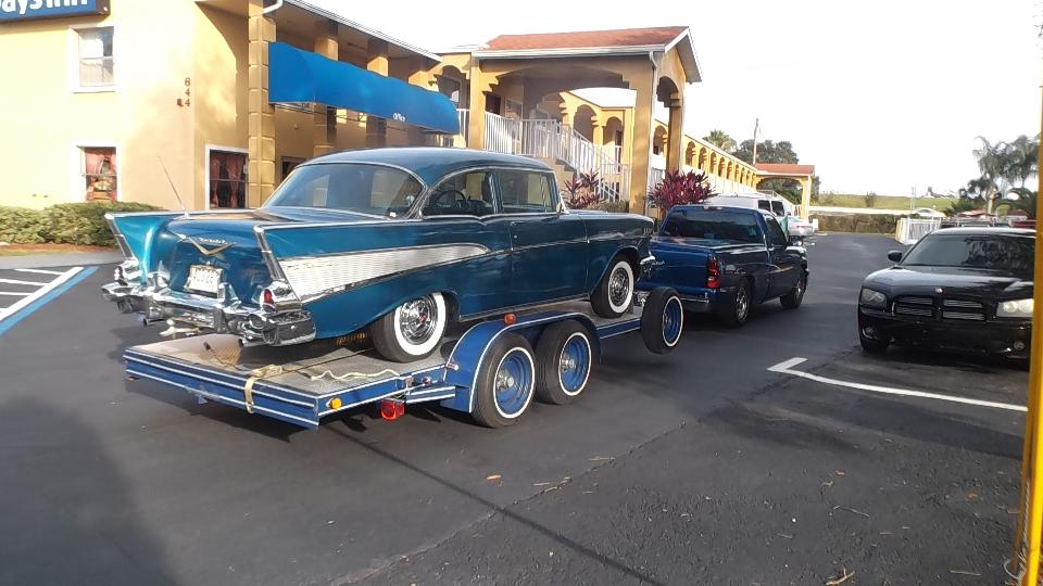 Today we noticed this nice blue 1957 Chevy on a nice blue trailer towed by a nice blue Chevy truck. Good start for the next leg of our tour.