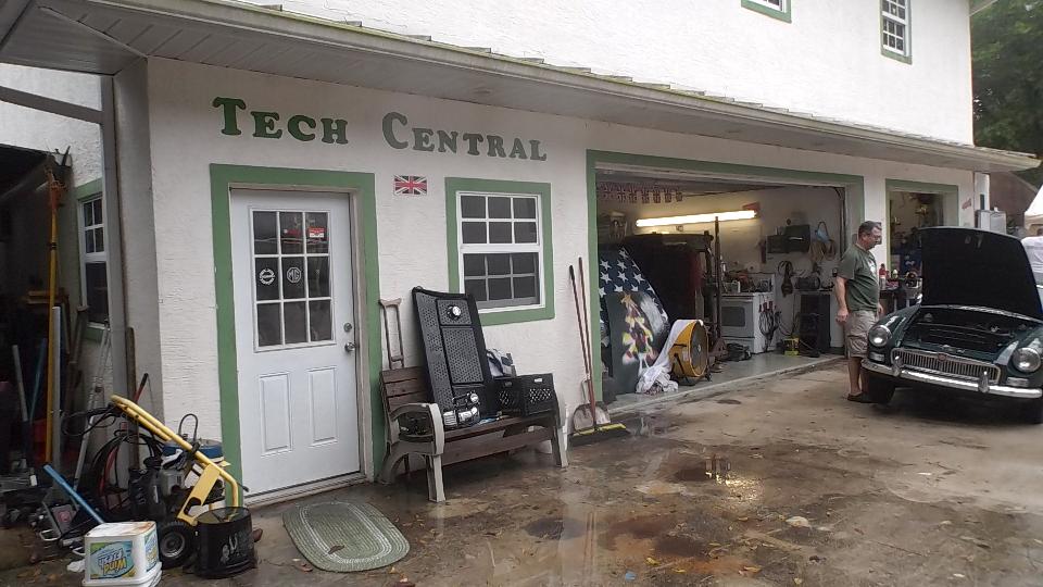 Today we had our second visit to Tech Central (last here Dec 12, 2014). This is Jerry Wilcox's place in Bonita Springs, Florida. Each Friday friends and members of British Car Club of Southwest Florida gather here to tinker with the cars (and general socializing). I like this place with hands on activities all around, and ample opportunity to put or keep more British cars on the road.