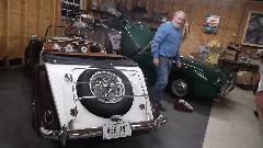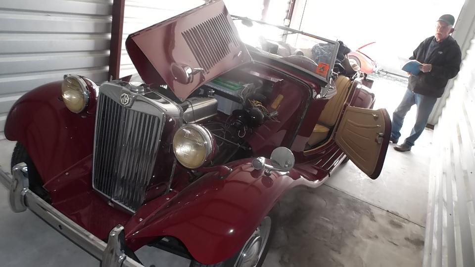 Around back we have Eddie's Garage (and the workshop). The TD is Eddie's car. This car was one-owner since new before Eddie bought it, having been resprayed once in original color in the late 90's. The paint now has nice patina (looks like it could be original if you didn't tell anyone), and the car is generally unmolested since new except for maintenance.
