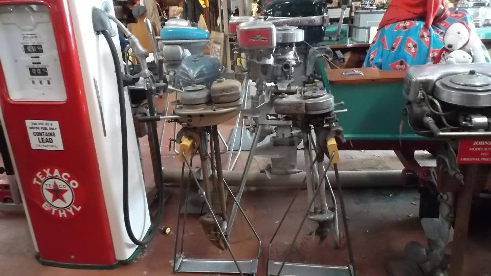 Today mid morning we dropped in to visit Robert Moore in Panama City, Florida. I heard he had some vintage cars, but I wasn't prepared for everything else. He seems to be collecting almost everything vintage, not only automobilia but also motor boat motors, wooden dolls, model railroad, slot cars, vintage clothing, coke machine, jukebox, telephone, road signs, model cars, vending machines, bicycles, you name it and he likely has it.