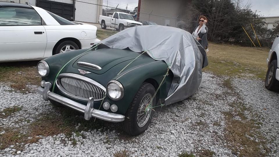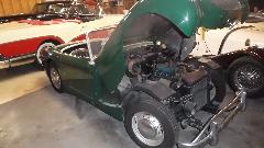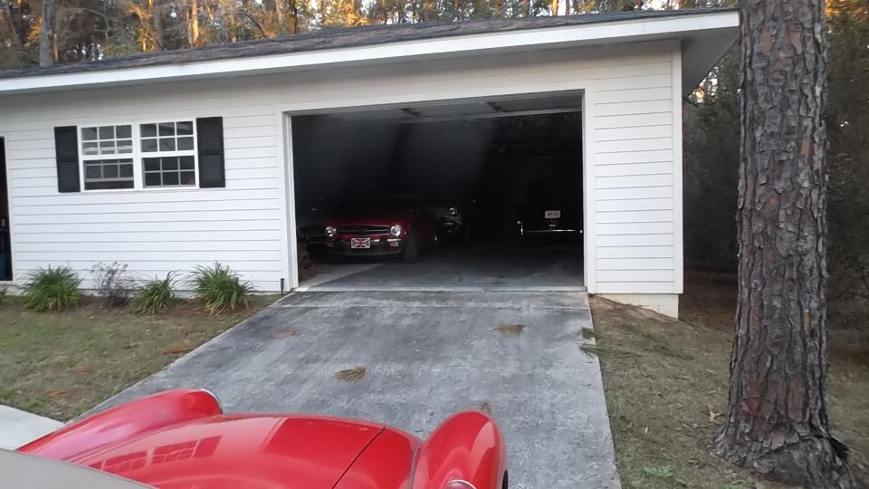 We were in Dothan (at 5-pm) to visit Ed Stone. This modest looking garage turned out to hold a bunch of treasure. On the right a 1961 Rolls Royce, then a TR6 and a Buick (who let that one in here?). On the left a Jensen Healey and Austin Healey 3000, and hiding in the back corner a Morgan Plus 4 and a 1961 Bugeye Sprite.