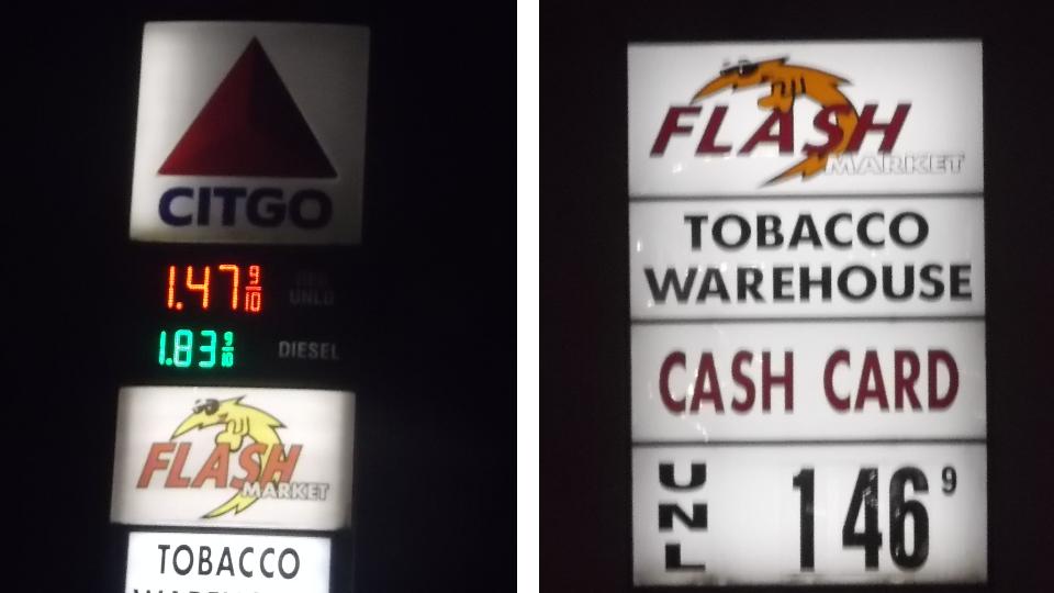 Okay it's not a fluke. We filled it up today in Tuscaloosa, Alabama, $15 for 10.7 gallons. Gotta love the world oil glut.