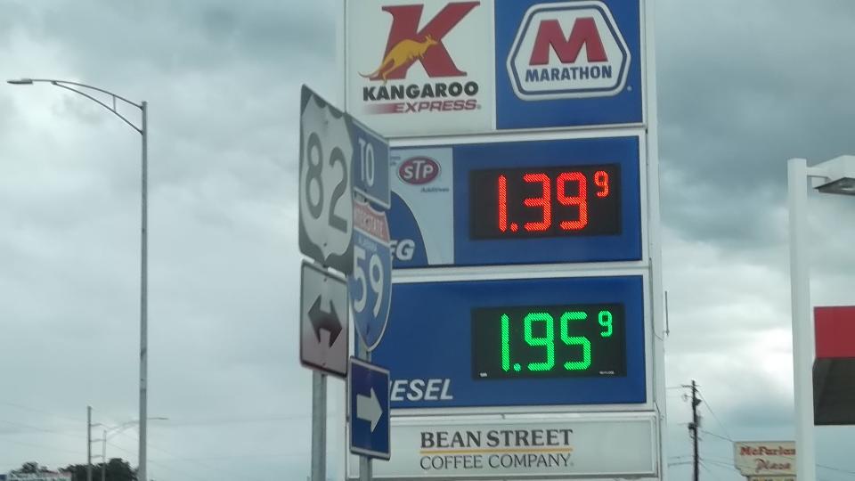 We talked a bit about a minor issue with door alignment, and did a bit of adjustment for fuel mixture. Otherwise nothing much needed here. Then we found another low fuel price in Tuscaloosa.