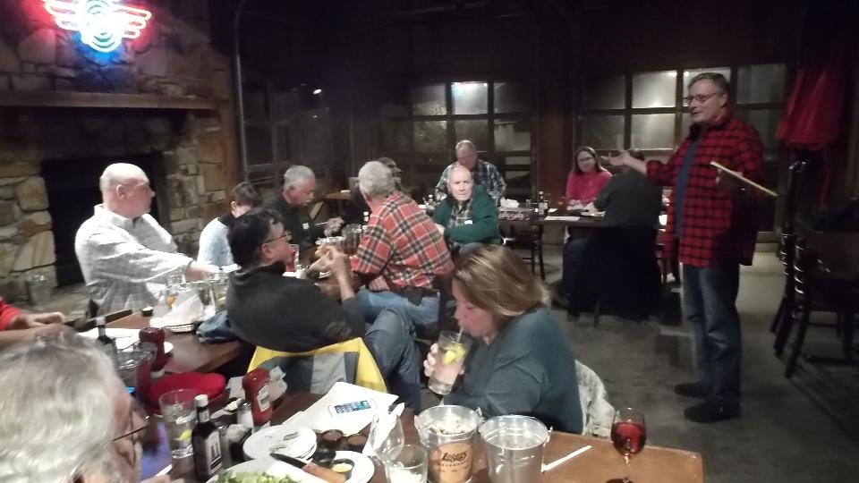 Then we were off for an hour run east to Birmingham for a meeting with Birmingham (British) Motoring Club at Logan's Roadhouse. It was downright cold for these folks, just above freezing (balmy spring day for northern Illinois), so attendance was somewhat lower than when we were here a year ago. I think I counted 20, which would be 15 locals and 5 guests, the guests being myself and navigator plus Elizabeth and her daughter from Cottondale and their friend (can't remember his name). They brought a King Cake for Fat Tuesday (last feast before Mardi Gras). We had a good dinner (and King Cake) and a good club meeting. I had to report an additional 40,000 miles since last years visit here. And how many cars have we fixed since then?
