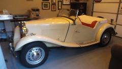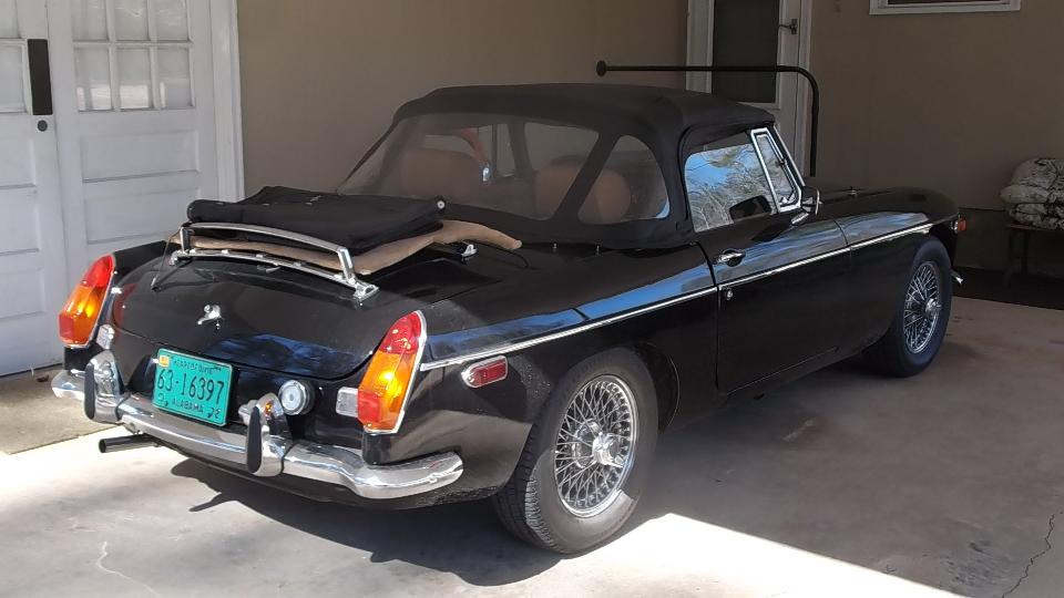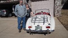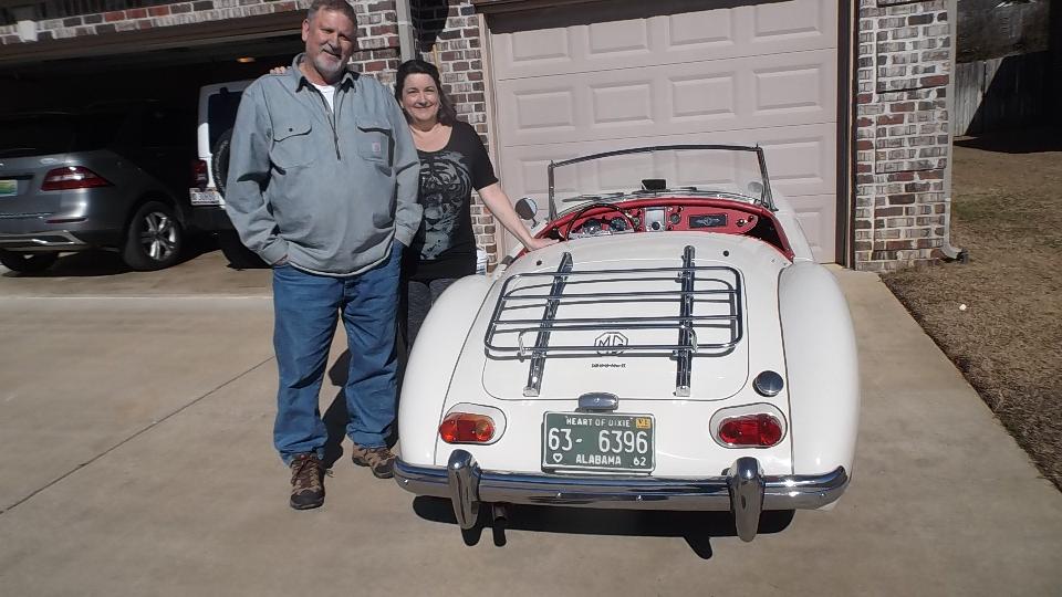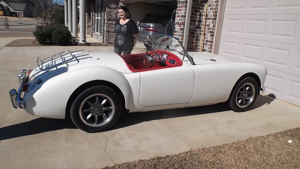 Today we had a visit with Eddie Davis (and wife) in Tuscaloosa, AL. Apparently the MGA is her car. This one was restored a few years earlier (was a bit of a mess before restoration), painting done by Eddie's brother. I rather like the wide wheels (with graphite color paint) but the 185-60-15 tires don't quite fill the wheel wells.
