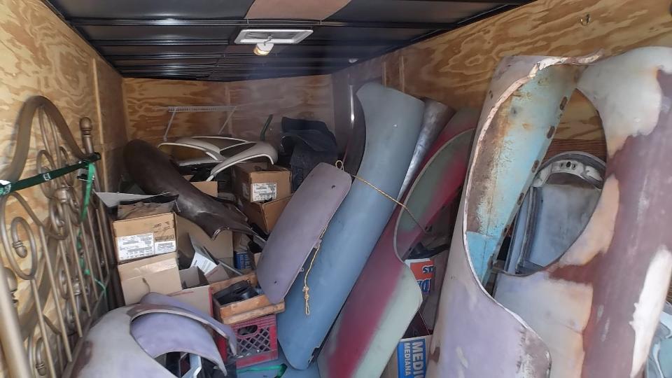 By day's end the stuff was stowed in a fairly organized manner along one side of two 10x15 foot storage lockers leaving space for the two rolling chassis. Eddie sounds hyped about this project, like he may get started on the work immediately with gusto.
