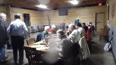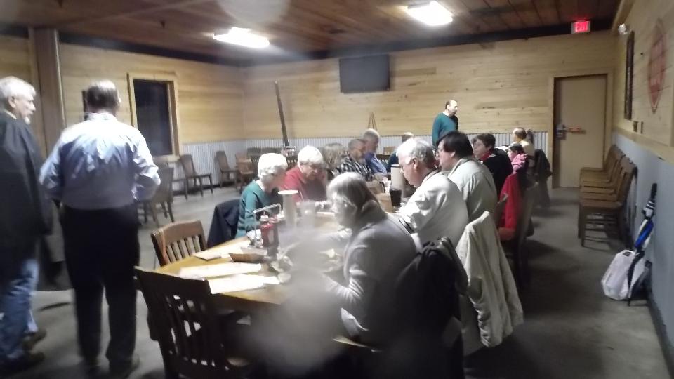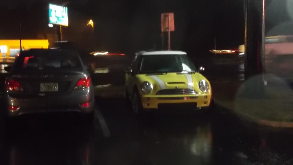 for another club meeting. Sporadic heavy rains during the last hour. Snatch a quick picture or two on the way to splashing in the front door and another inside (forgive the water spots on the lens). By the time everyone had trickled in there were 30 people on hand for BBQ and a rather serious club meeting. One more picture on the way out. I guess they drive Minis in the rain. Back to WiFi for a couple hours before heading back north. We intend to be back in Monroeville, AL before midnight.