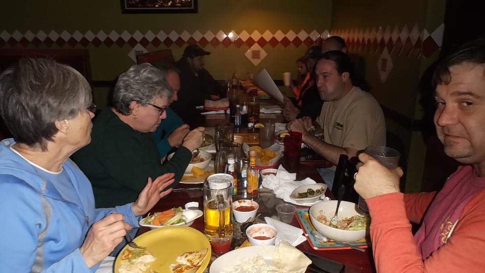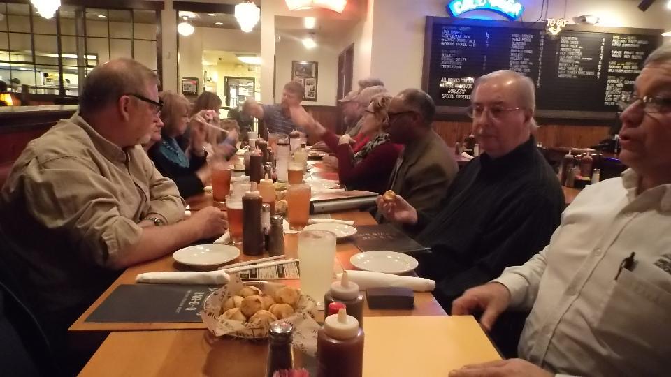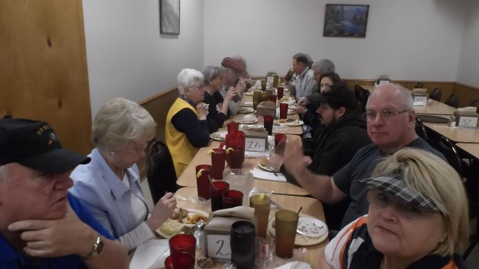 In the evening we had a dinner meeting with West Alabama British Car Club. This meeting was a long time in the making, having bad timing last year when we were in the area, but worth the effort. We had about 20 people present once all collected, nice dinner, nice business meeting (in spite of noise problems). I had a few minutes to explain what we were doing with our road trip (although several people knew about us in advance). By end of evening we had a couple more appointments.