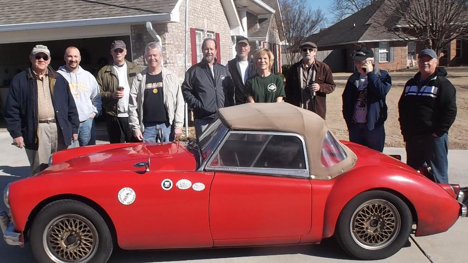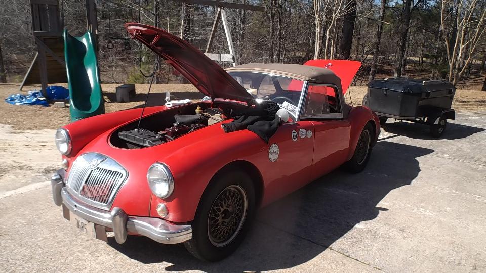 The 1960 MGA belongs to Keith Treadwell. This is the car that was painted in a car port (with amazingly good results), just finishing restoration when we were last hear a year ago. Today it was chattering a bit too much, easily cured with a valve adjustment (good topic for a quick tech session).