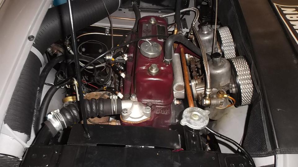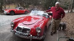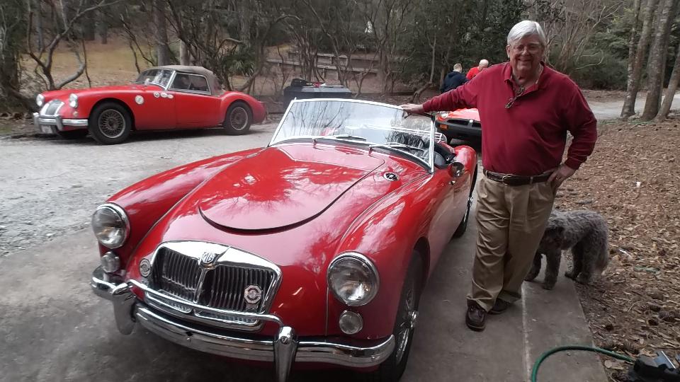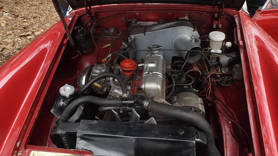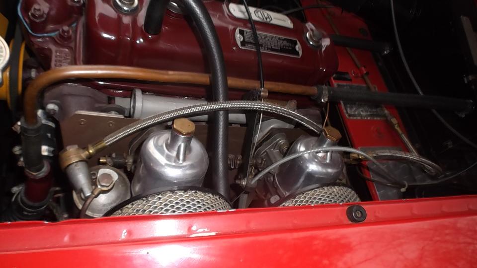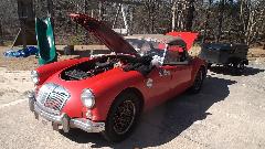This 1962 MGA belongs to our host, Larry Stephens. Last time we were here it had leaky hoses for the oil cooler, which has since been fixed. Today it was idling too fast and a bit rough. Easily fixed with fuel mixture and idle speed adjustment.