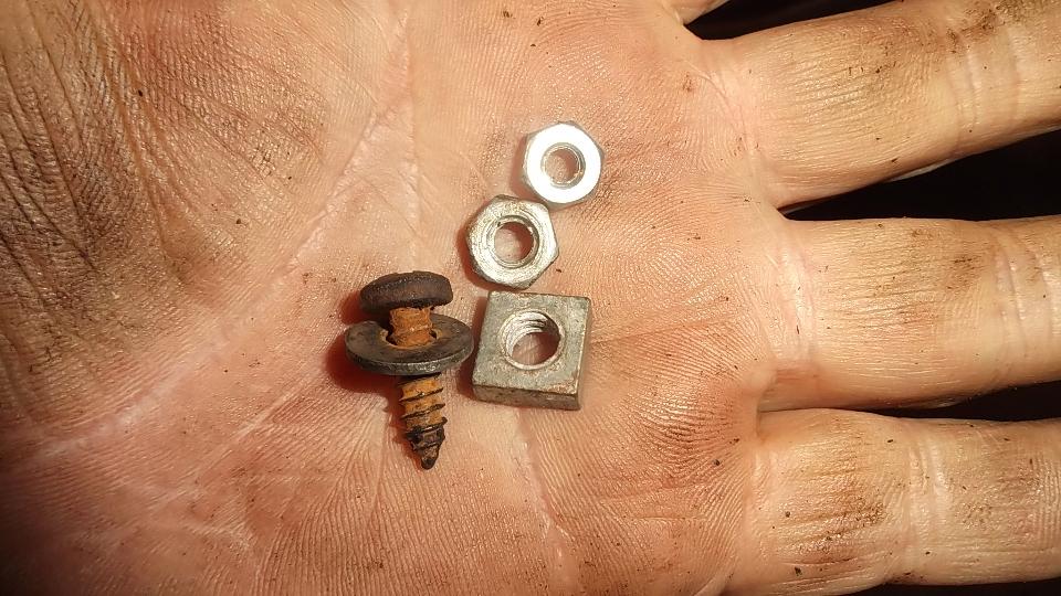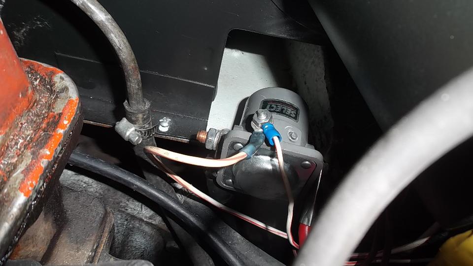 Then tend to an intermittent starter problem, which turned out to be an intermittent contact in the remote solenoid. While removing the old one and installing the replacement, I dropped a mounting screw which got trapped between the starter motor and inner frame rail. During a contorted process of retrieval with a coat hanger I found a few more fasteners that had found a home in an obscure area of the chassis.