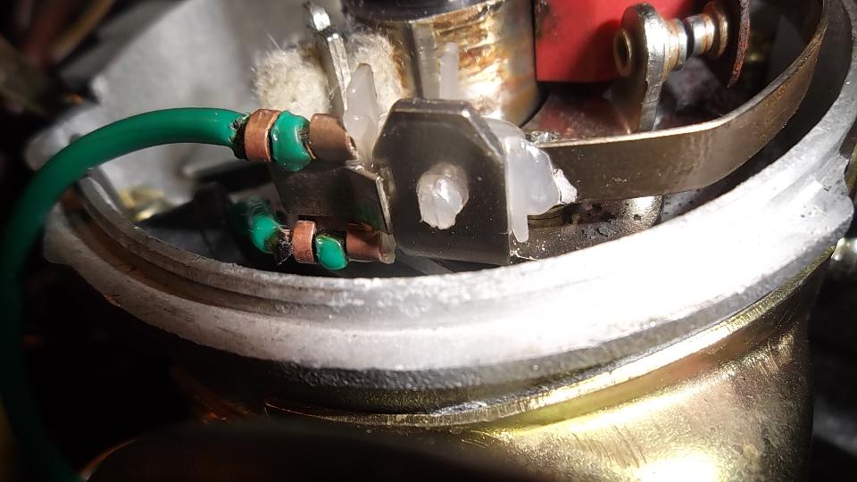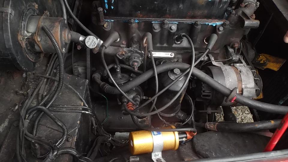 Then we hit another snag with intermittent spark. Occasionally the engine would start and die. Most of the time no spark at all. This turned out to be a design or manufacturing fault with the contact points set in the all new distributor. The tail of the points leaf spring was shorting to ground on the mounting bracket Solution was to use a Dremel grinding disc to cut the spring tail a bit shorter to avoid the physical contact to ground. When reinstalled, the engine fired right up.