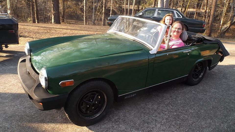 Family dinner at a restaurant tonight, time to celebrate, and Elizabeth was bound and determined to drive the Midget. Jolly good fun, table for 11 I believe, and the family was kicking tires in the car park after dinner.