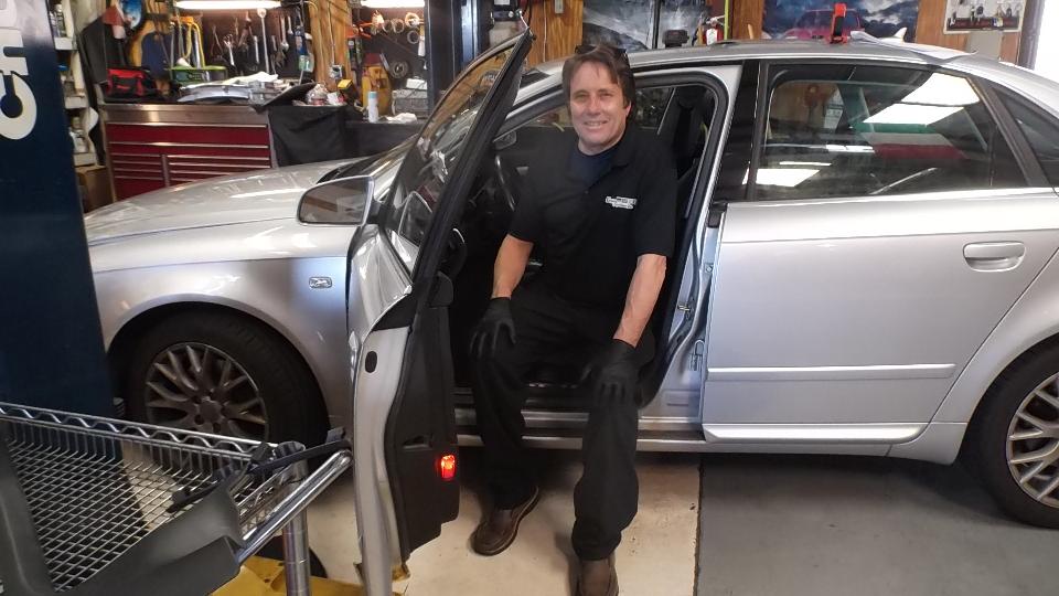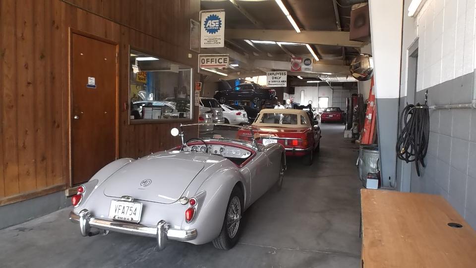 Say hello to Alan Apel who owns and runs the place, hands on. Today he was "fussing" with a computer problem in an Audi A4. The "body control computer" is under the driver side floor while a "comfort control computer" is inside the door attached to the window winder motor. Replacing either or both did not solve the problem, until he found a pinched cable passing between door and body. That was a very expensive repair. I mention it here as a reminder why I really like my vintage MG.