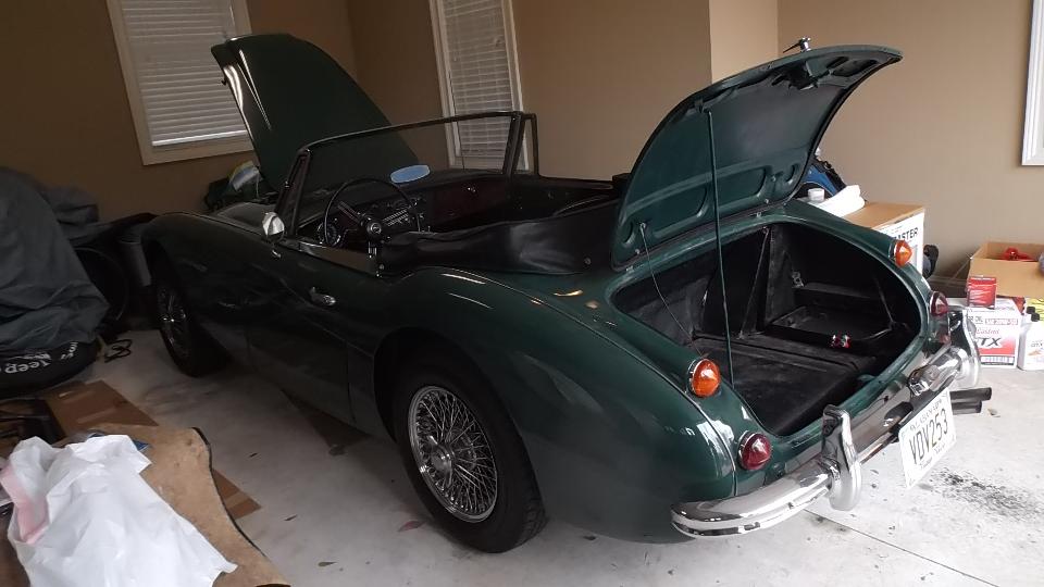 The MGA in process (which ran before disassembly) is trying for a body repaint, fresh interior and trimming without full chassis restoration. The body was at a paint shop just beginning painting of loose parts. The chassis doesn't look like much, but it is solid, has had a bit of work, and pretty much all of the original parts are present.