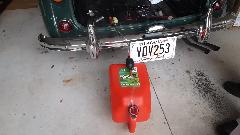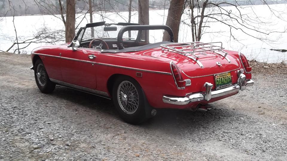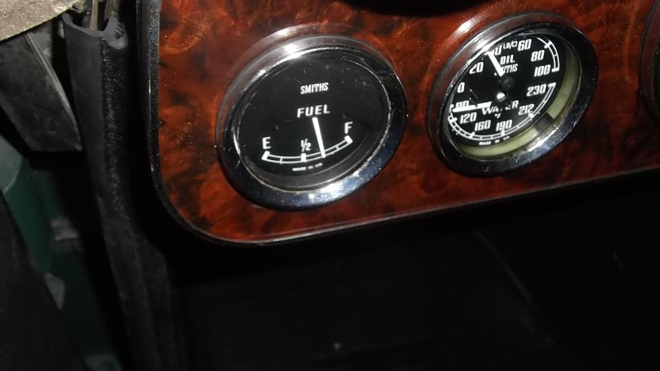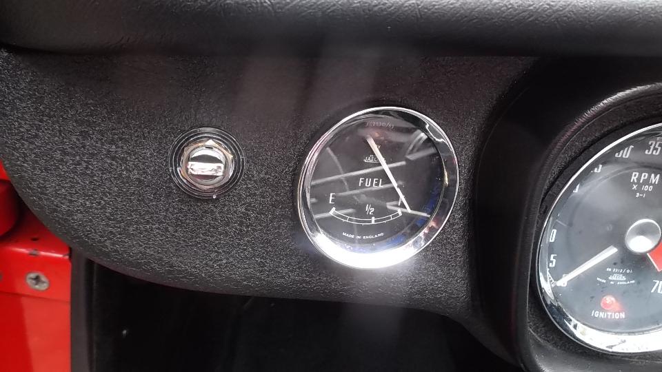 This nice 1964 MGB (early pull-handle car) belongs to Jim Walton. He recently R&R'd the dash panel to have it repainted in original wrinkle black. Very nice but then the fuel gauge didn't work. Easy fix as it turned out two wires for Battery and Tank were switched. put them back the right way, and it works.