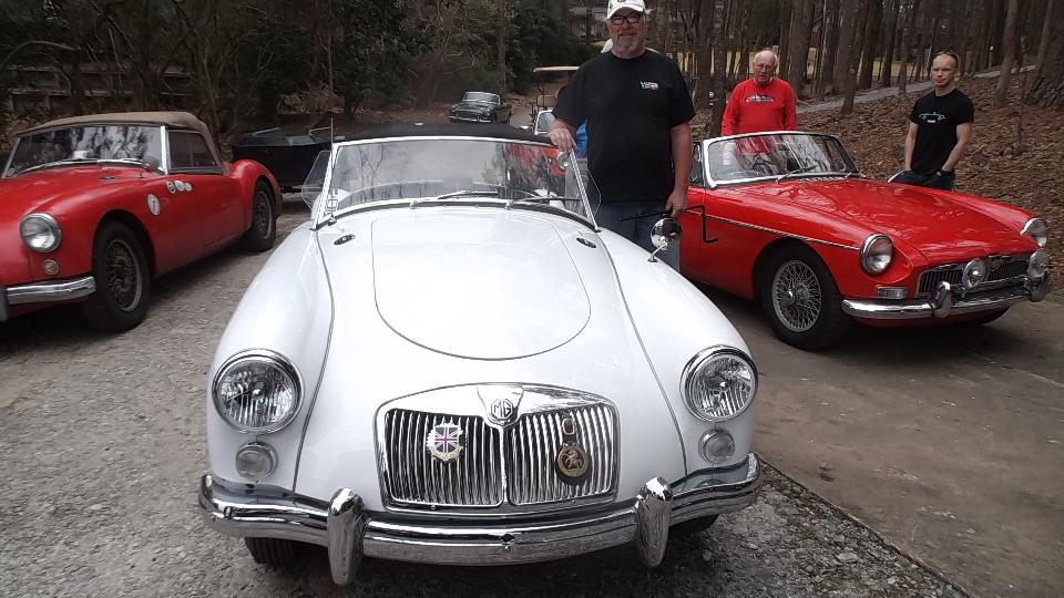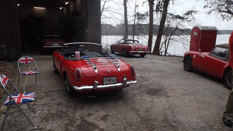 Today we crossed the Chatahoochie River and staged a tech session with Brits In The Valley club in Columbus, Georgia. This is the club we accidentally created out of the mist a year earlier (and therefore one of my favorite places). It was a noon to six gig (back in the Eastern time zone), and we got a lot done Lets see if I can remember what and who. Our host today was Larry Stephens with a huge driveway and home right on the east bank of the Chatahoochie River, He has a Jaguar XJS V-12 and an MGA 1600-MK-II. We will get to the MGA later.