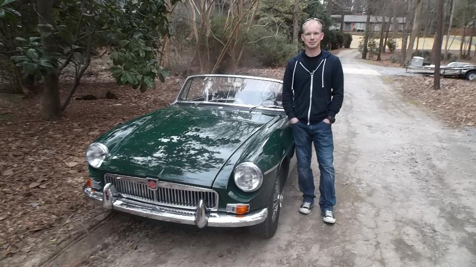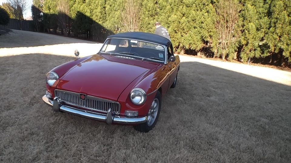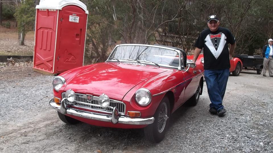 This 1969 MGB belongs to Chuck Black (from Phenix City, AL across the river). Distributor rotor is 180 degrees off, so the HT wires are out of place to run. Radiator fan is backward as well. Fairly recent acquisition so who knows what else may be wrong but at least it runs. I think all it needed was a bit of carburetor tuning.