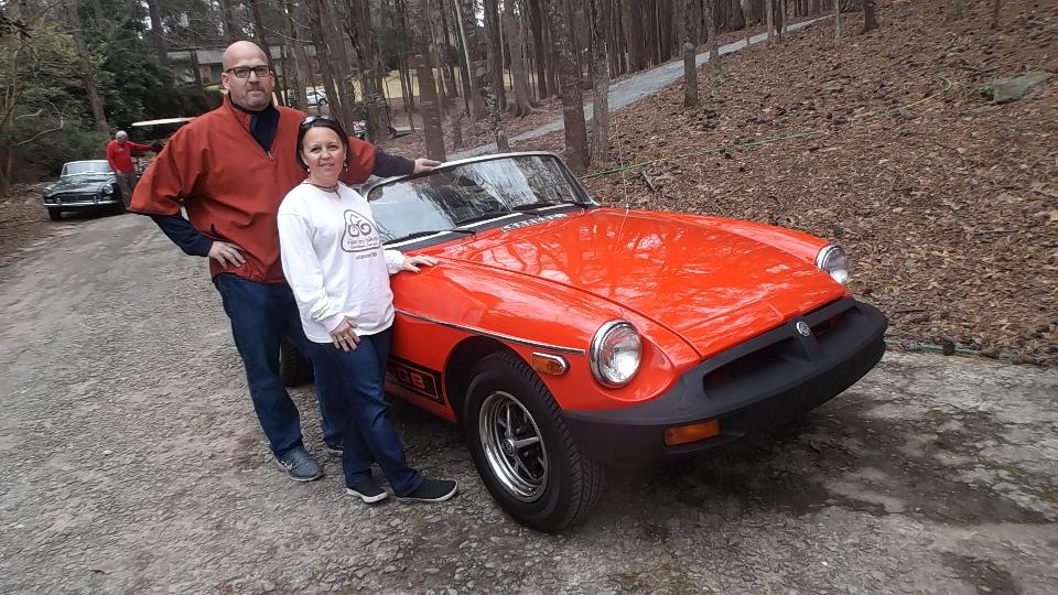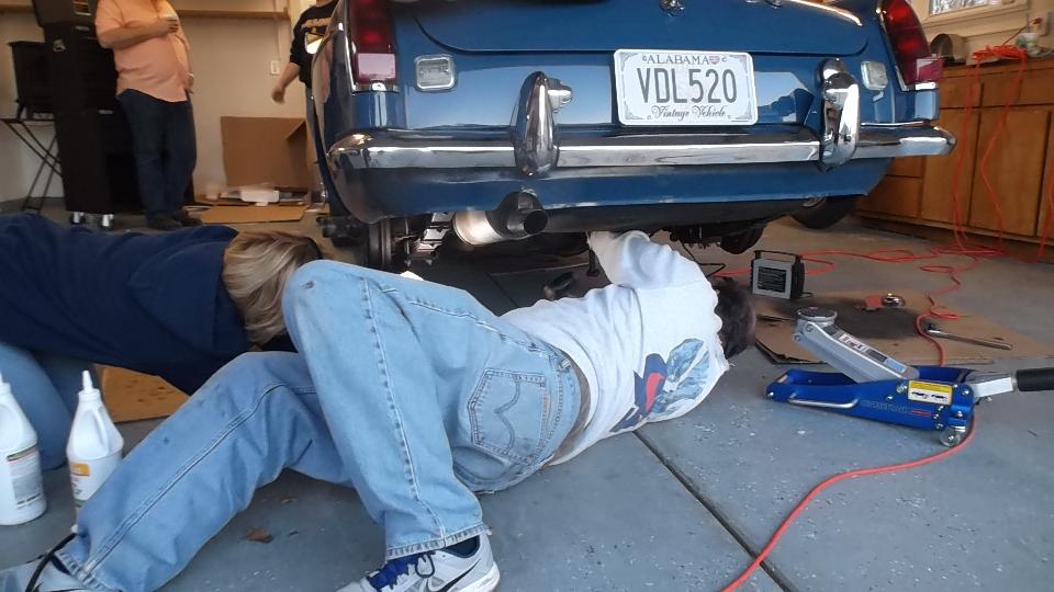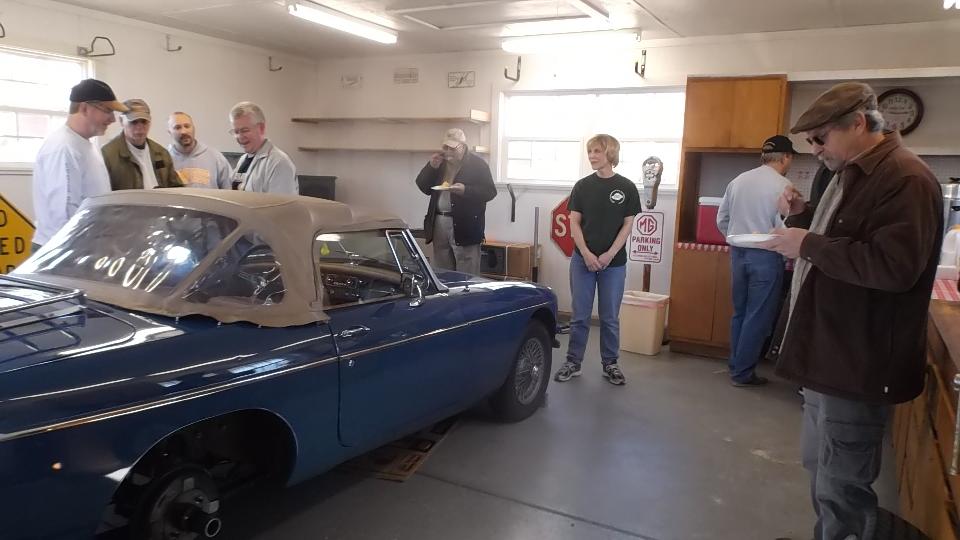 Tech day at 9:00-am today with North Alabama British Motoring Society in Owens Cross Roads, Alabama (northern Alabama near Huntsville). The lady in center of first photo is Susie Farmer. She owns the house and the MGB we would be working on today. A few more people would arrive later.
