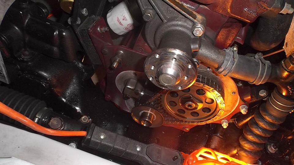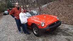 This 1979 MGB belongs to Dave and Tonya Arwood from Smith's Station, Alabama. A very nice car with a Weber carburetor conversion, having a problem with rough idle. Carburetor mixture adjustment did not help. Timing adjustment by ear did not help. Seems to be misfiring on #2 and #3 plugs, HT wires test okay and new spark plugs did not help. Valve lash checks out okay, but it still runs bad, maybe a blown head gasket. Someone ran off to get a compression tester, and compression checks out okay. Connect a timing light, and the results don't make sense. Timed where it runs fairly well, the timing mark is more than 40 degrees BTDC. Reset timing to 20d BTDC and it runs like crap. Huh? Maybe the outer ring of the harmonic balancer has slipped. Remove spark plug and feel piston top with a screw driver, rotate engine a bit to set piston at TDC and the timing mark is exactly at TDC. No problem with the harmonic balancer. Now what? Check cam timing. Remove valve cover, rotate engine until the first two valves are rocking and at same height. Then take another look at the timing mark, which is now about 20 degrees After TDC. Bingo! Cam timing is wrong with the timing chain one tooth off on the sprockets. That expains why it wants to idle with spark timing at 40d BTDC. Not an expensive fix, except for some grunt labor time. Set a date for another tech session to R&R the timing chain and sprockets to correct the cam timing.