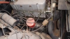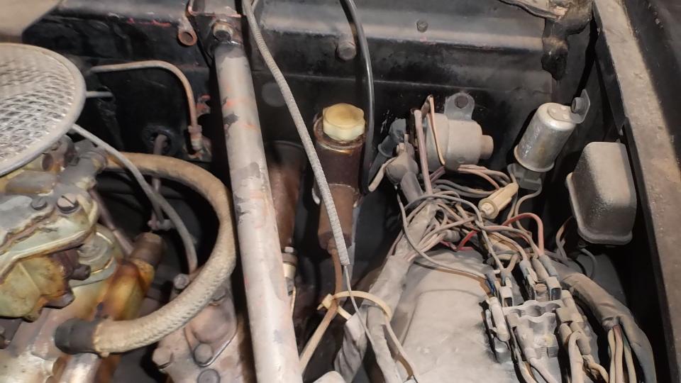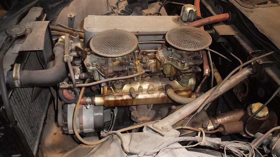 On first look it appears to be a solid car, not much rust, not much body damage, and generally complete. Unfortunately it has also been sitting for decades, so it needs a lot of everything. The engine turns over, but the carburetors are well seized up. He has carburetor rebuild kits and lot of new hydraulic parts. I have an urge to spend a couple of days rebuilding carbs, flushing the fuel system, and getting it running, but then it still looks like this, and has no brakes. So I could spend a couple more days rebuilding the hydraulic systems to make it drivable, but then it still looks like this, and needs lots of seals, glass, paint, interior work. I'm sure this car would be a good candidate for restoration, if someone was inclined to do it. But of course full restoration will always cost more than the car is worth when done.