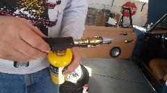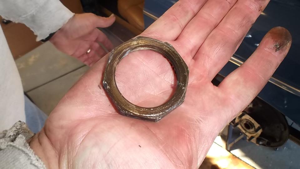 Trying to remove the (very tight) octagonal nut turned into a Hurclean task. First attempt with a breaker bar on the big blue tube socket resulted in the socket slipping off the nut. So out came the Mapp Gas torch to heat the nut, which was not enough, resulting in chewing up the inside surfaces of the tube socket as it slipped off the nut again. So Susie was off to the parts store to fetch another tool.