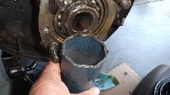 For the next effort, we ground the end off of the blue tube socket to renew the crisp edges on the working surfaces. Then more big boy tools, an air compressor and an impact wrench turned up to 175-psi pressure. After 10 to 15 seconds of continuous hammering, the nut finally gave up and came loose. Remember, just keep repeating to yourself, "Failure is not an option".